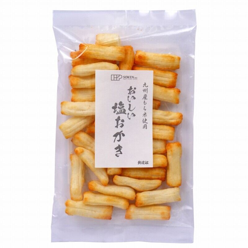 九州産水稲もち米を100%使用し、焼き上げた塩味のおかきです。化学調味料は使用しておりません。