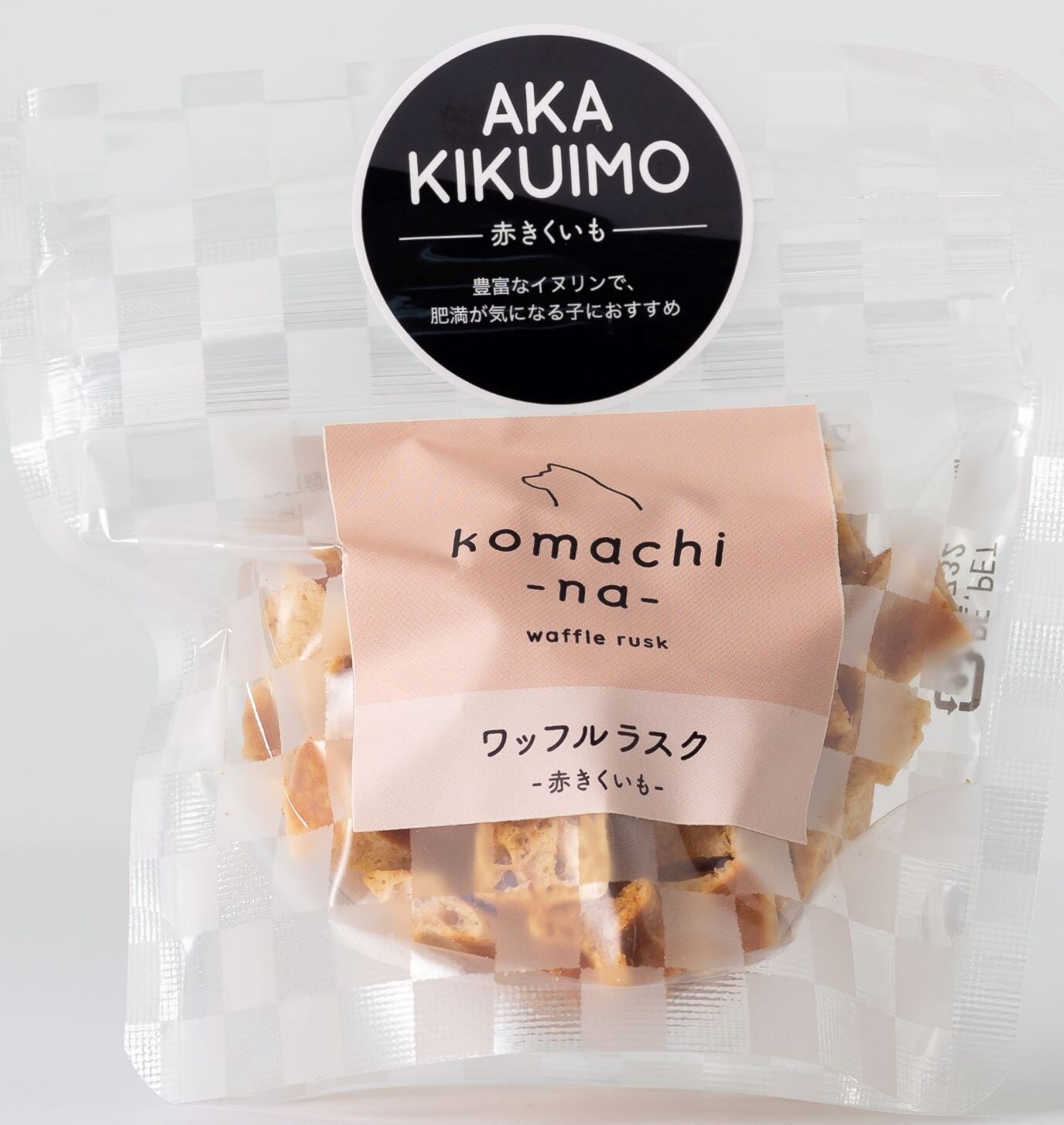 ワッフルを2度焼きして、食べやすいひとくちサイズにしたラスク。イヌリン豊富なので太り気味の子にも。【komachi-na-とは...】